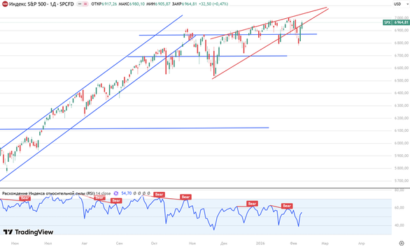 Вчера, 9 февраля, американский рынок продолжил рост — во многом за счет технического отскока в IT-секторе и позитивной реакции инвесторов на возобновление диалога между США и Китаем. Технологические бумаги отыгрывали прежние потери: технический рост у крупных бумаг дал возможность индексу подрасти, а хорошие корпоративные комментарии усиливали краткосрочный импульс, тогда как новости о дипломатических контактах снизили премию за геополитический риск и вернули аппетит к риску в более широкие сегменты рынка. Но при этом рынок остается уязвим к движениям доходностей и важным макросигналам: если облигационные ставки пойдут вверх или выйдут негативные инфляционные данные, часть этого оптимизма может быстро скорректироваться, поэтому продолжающаяся волатильность — вероятный сценарий.