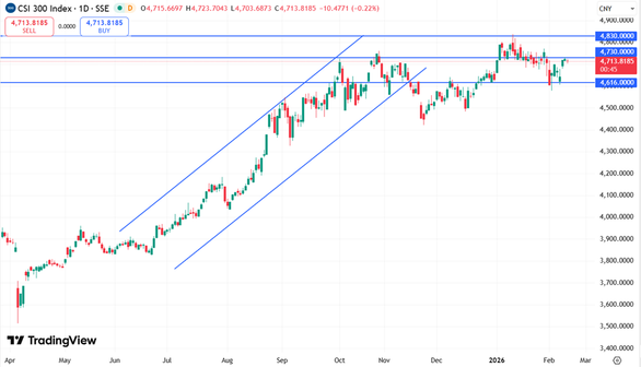 Индекс CSI 300 торгуется в районе 4713,8 пункта, оставаясь ниже зоны поддержки 4730 пунктов. В случае усиления покупательской активности индекс способен вернуться в диапазон 4730-4830 пунктов. При сохранении негативного рыночного фона давление на котировки может усилиться, что откроет путь к снижению в район 4616 пунктов.